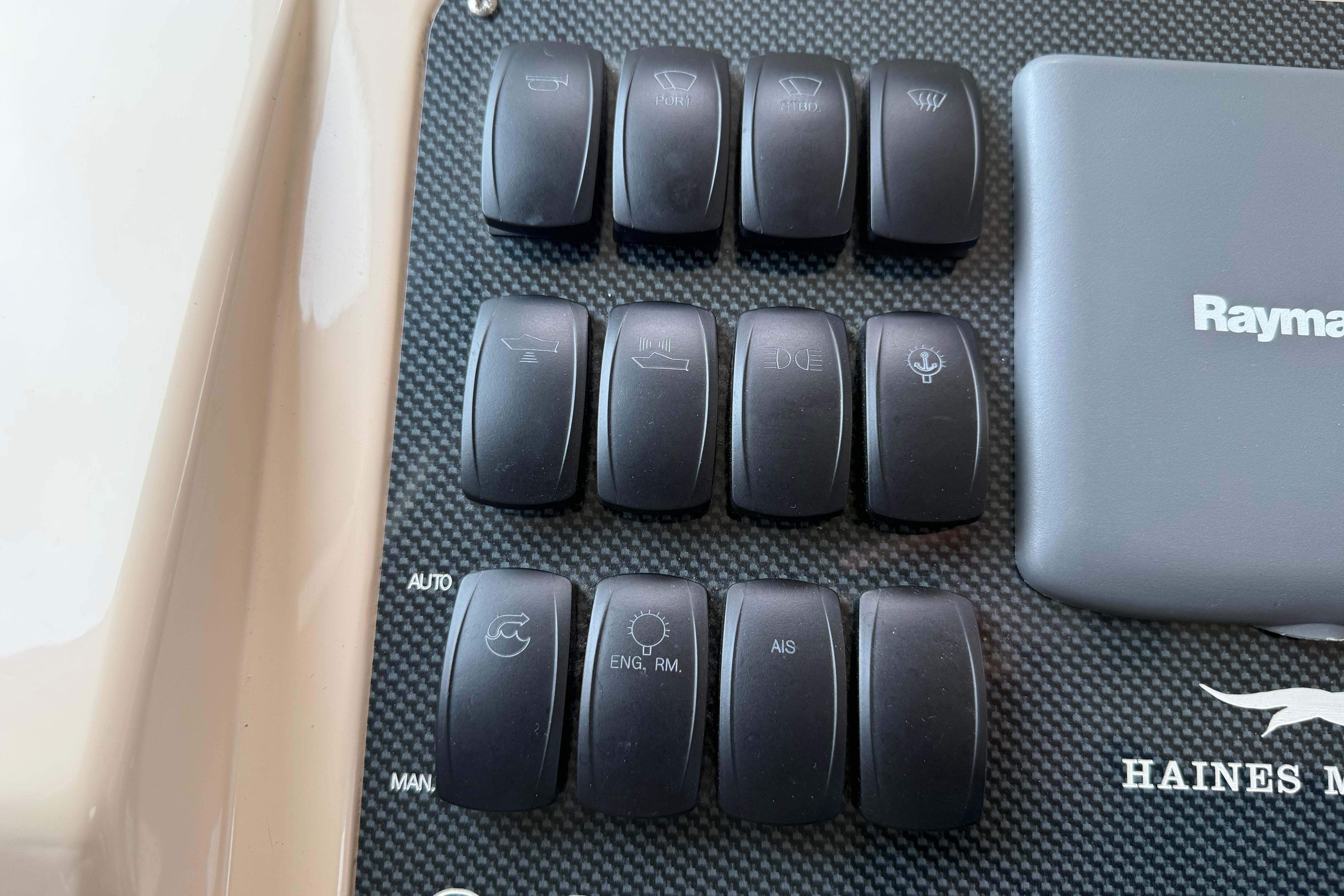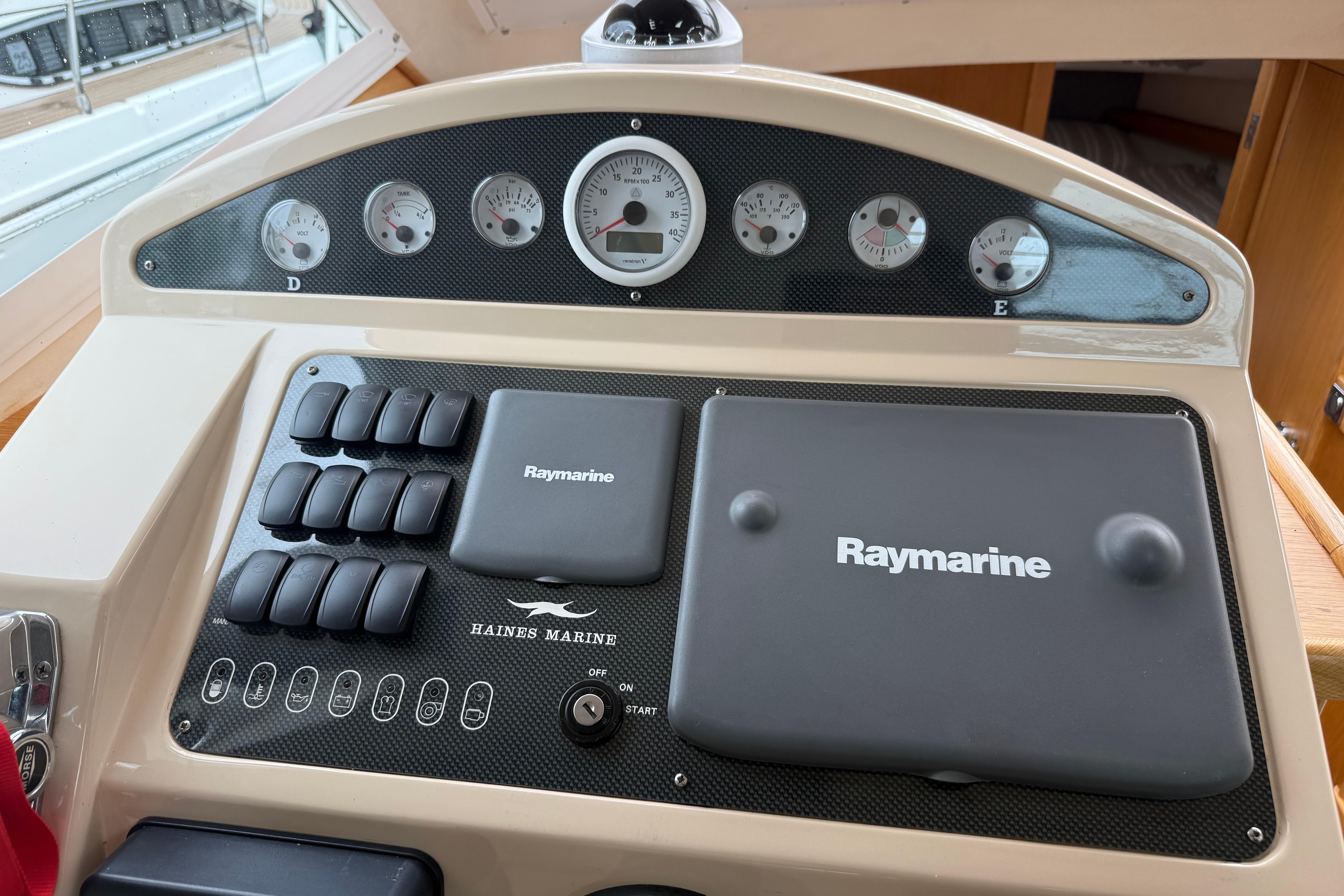 Raymarine navigation equipment including plotter, TriData and VHF.