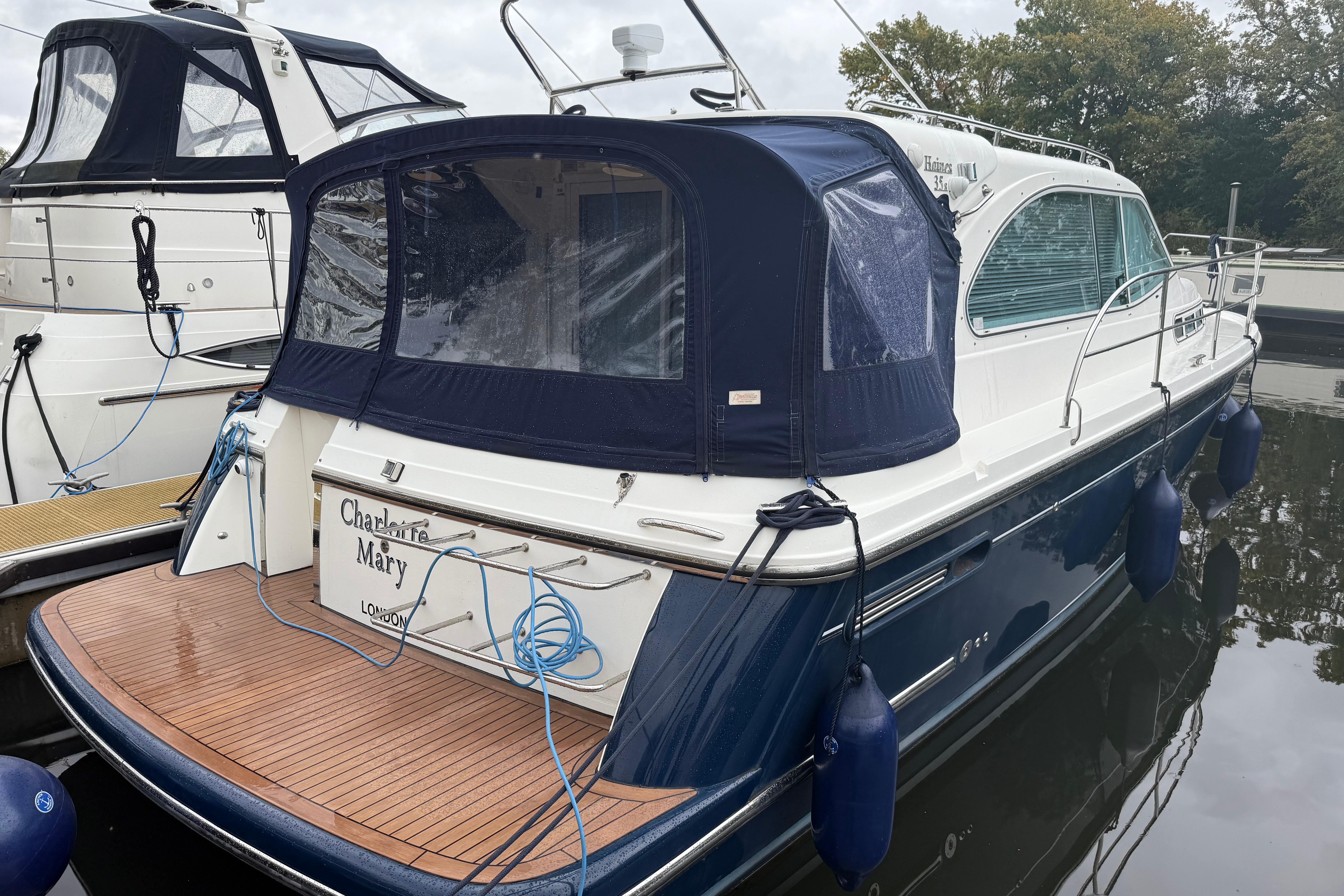 Converted/Extended to Haines 35 Sedan spec via the addition of a swim platform in 2019.